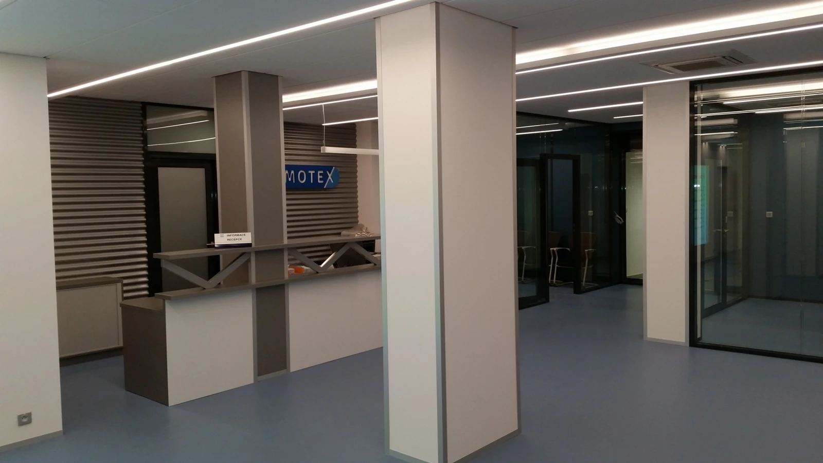 Jde o modernizaci vstupních prostor sídla společnosti Gumotex. Záměrem návrhu je uvedení do stavu, který bude reprezentativní a současně přátelský pro firemní návštěvy i zaměstnance. Charakteristikou by měla být lehkost, světlé barvy a design evokující technický pokrok a progresivní myšlení.